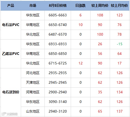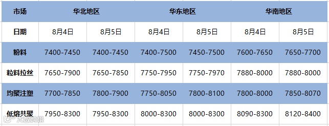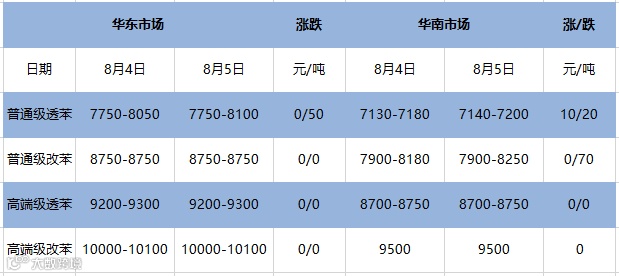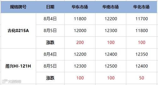 注:华东市场价格为含税价格,华南市场价格为未含增值税价。