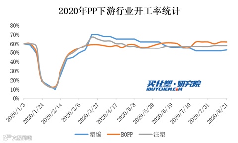 需求方面,分品种来看,现阶段PP无纺布行业开工仍处高位;注塑近期开工走势相对平稳,终端需求表现一般;膜料整体开工表现亦相对平稳;管材行业7月份开工窄幅提升后,现阶段开工走势相对平稳;塑编现阶段开工仍偏低位,终端订单跟进欠佳,工厂多刚需采购维持,操作积极性一般。但金九银十传统旺季将至,且据从市场了解部分大厂订单稳定,预计下游整体开工负荷仍有提升空间。