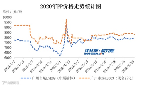 8月份,国内PP市场走势一直处于偏强整理阶段,截至目前华东拉丝主流报盘在6750-8000元/吨,较7月底上涨100元/吨左右,较去年同期低650-800元/吨。而随着装置检修进入尾声,生产企业排产陆续恢复和新增产能投产,以及“金九银十”传统需求旺季来临,市场供需博弈阶段即将到来。