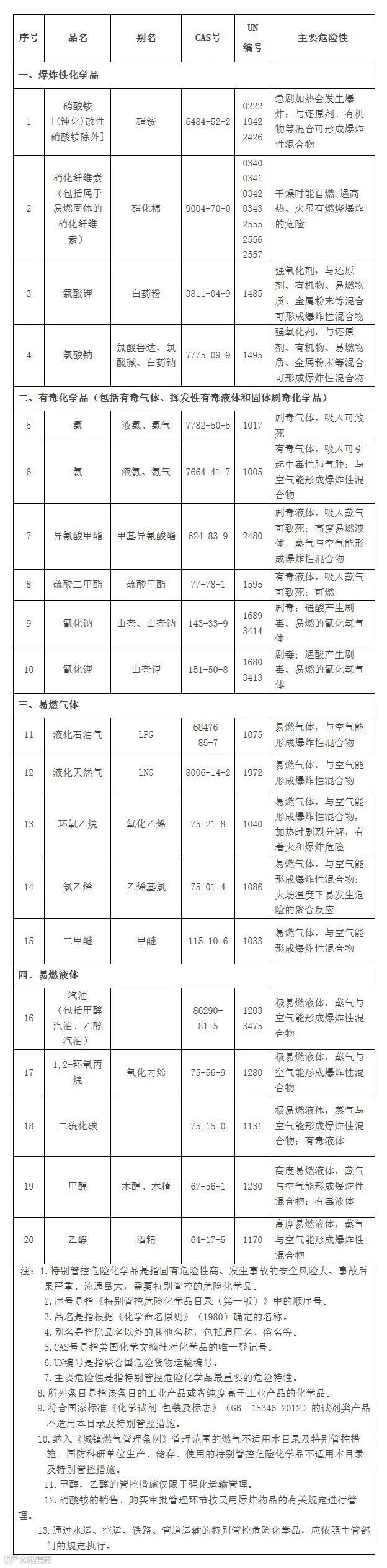 应急管理部网站6月12日公开了《特别管控危险化学品目录(第一版)》,列入的危险化学品达20种。