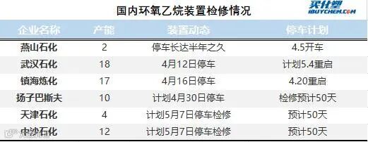 此外,由于前期环氧乙烷拉涨带动,下游市场抄底意愿渐起,积极入市补仓。据悉,部分下游聚羧酸减水剂单体工厂4月份订单已排满,甚至有些已排到5月中旬。受订单支撑,工厂消费环氧乙烷的能力也有所提升。