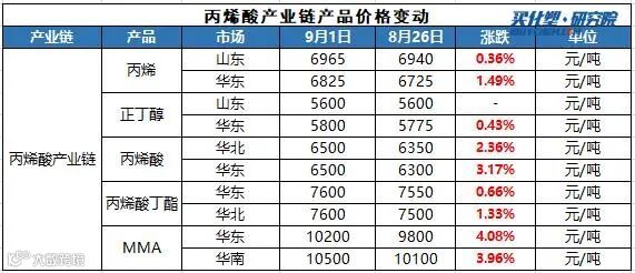 进入到9月,国内丙烯酸及酯产业链产品价格在市场推涨气氛之下显得越发浓厚,接连刺激市场价格攀升。当前原料价格居高不下,高成本压力较重,且后期面临检修装置停车,市场现货供应缩减,“金九银十”之际国内丙烯酸及酯市场或将出现稳中小幅拉涨局面。