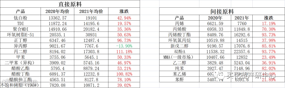 如果说2020年在公共卫生事件贯穿全年,大宗商品普跌,涂料原材料也纷纷创历史新低,那么2021年就是涂料原材料普涨,价格纷纷创近年历史新高。