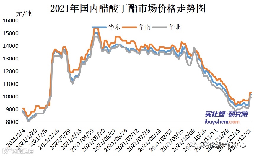 成本方面,醋酸丁酯受供需失衡影响,近两年市场走势多贴近原料端运行。2021年,正丁醇市场的走势亮眼程度,较之冰醋酸更是有过之而无不及。