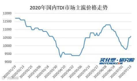 7月初,随着终端制品外贸订单明显好转,对原料采购量有所提升。据悉亚马逊进口海绵制品订单量大幅提升,外商在备货,提前为国外复工、复产准备海绵成品库存。部分外商认为当下具成本优势,故而备库意向浓厚。虽然内贸海绵制品及固化剂均处于传统淡季,但实际需求量与2019年同期相比基本持平,并无明显减弱,加之国内各行各业按部就班恢复,TDI价格也水涨船高。