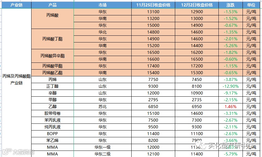 丙烯及丙烯酸酯产业链