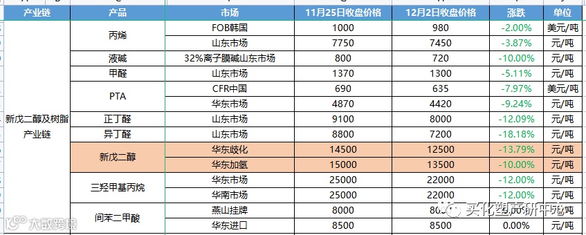 新戊二醇及树脂产业链