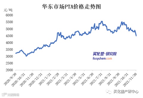 不过PTA价格则出现回落,11月PTA均价4870元/吨,环比下跌8.4%。