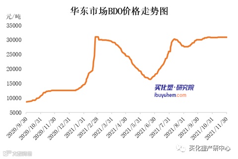 本月BDO价格延续上行态势。截止11月30日,华东地区散水货源主流商谈在30900-31000元/吨,华南地区散水货源主流商谈在31000-30300元/吨。