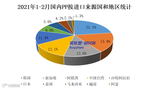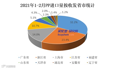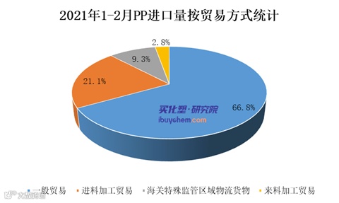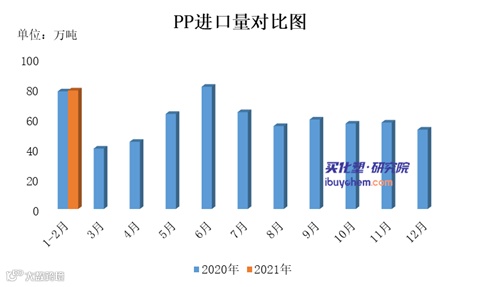 据买化塑研究院【化塑产业链决策系统】跟踪的数据显示,2021年1-2月国内PP进口量为79.04万吨,较去年同期增长0.8%。