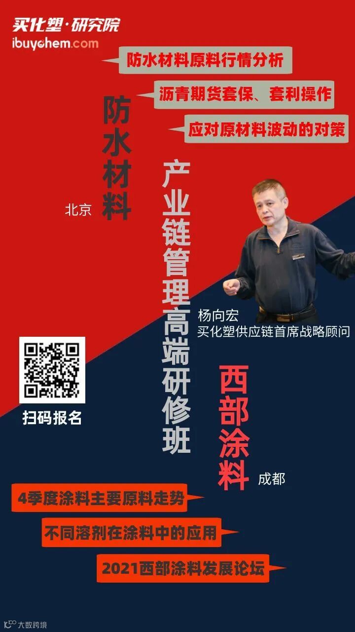 2021年涂料及防水行业原材料价格上涨,使企业成本压力重负,如何在原材料大涨大跌波动之际制定有效的采购策略。买化塑供应链首席战略顾问杨向宏将为您解读2021年大宗化工品行走势,辅助企业制定原材料采购策略,帮助企业规避成本风险。