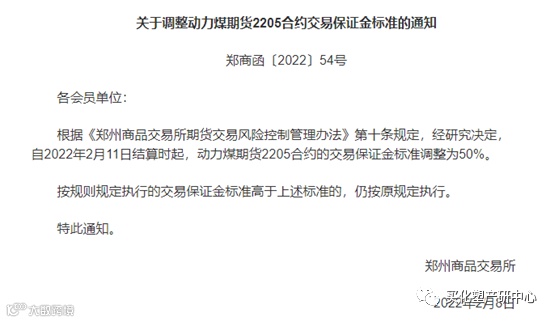 2月8日,郑商所率先发布通知,自2月11日结算时期,动力煤期货2205交易保证金调整为50%。