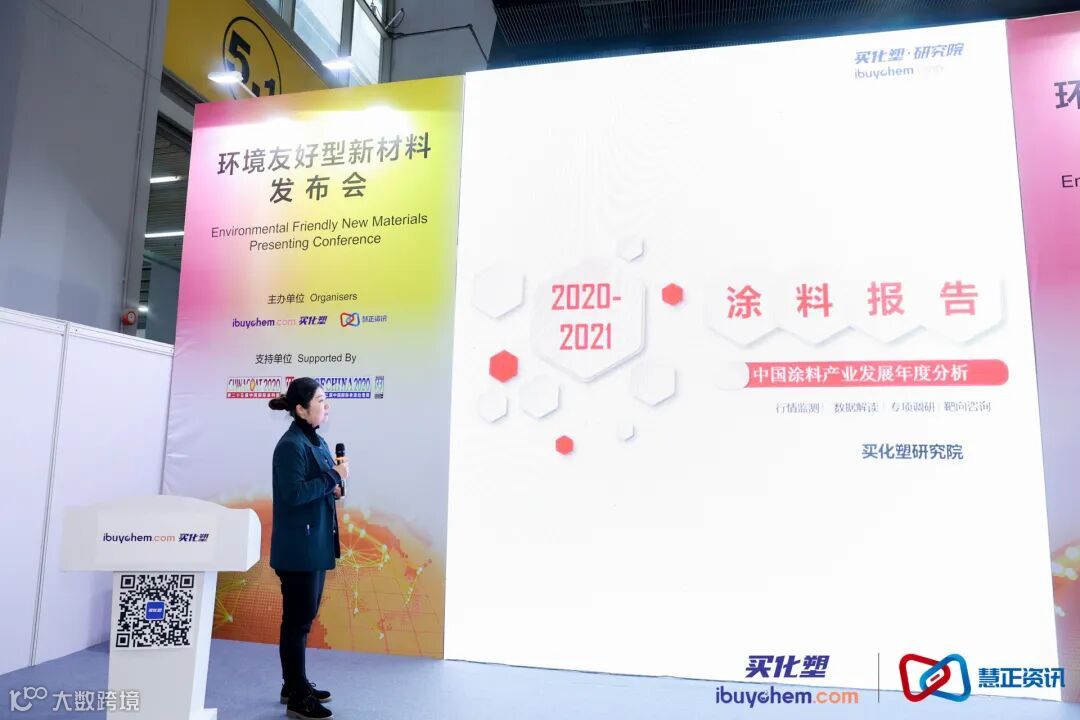 第二十五届中国国际涂料展 CHINACOAT2020于2020年12月8日-10日在中国进出口商品交易会展馆A区举行。买化塑研究院总监郭娜在“环境友好型新材料发布会”以产业数据的形式为大家解读2020年中国涂料产业发展状况。