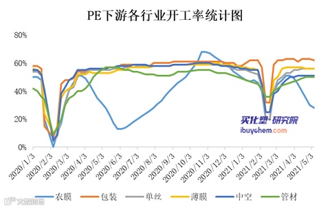 据买化塑研究院【化塑产业链决策系统】监测的数据显示,5月份,国内检修的PE装置涉及12家生产企业,涉及检修产能为480.5万吨,检修损失量预计在21.6万吨左右,与4月份检修损失量27.2万吨相比,减少20.6%。其中LDPE检修损失量预计在5.6万吨,LLDPE检修损失量在4.3万吨,HDPE检修损失量在6.2万吨,全密度检修损失量在5.5万吨。新装置方面,华泰盛富40万吨全密度装置和海国龙油40万吨HDPE装置计划5月份投产,加上4月底连云港石化投产的40万吨/年HDPE装置,5月份供应压力明显增加。