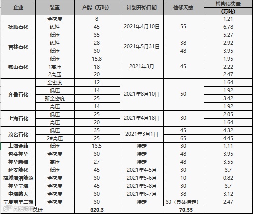 2021年国内PE装置检修计划