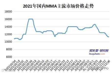 11月国内PMMA市场延续跌势。截止11月30日,华东市场主流价格在15000-16500元/吨。