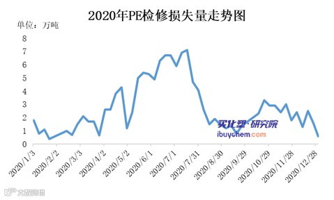 据买化塑研究院【化塑产业链决策系统】跟踪的数据显示,2020年国内PE装置检修损失量为139.5万吨,同比增长5.4%。