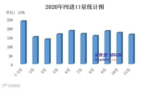据买化塑研究院【化塑产业链决策系统】跟踪的数据显示,1-11月PE进口量为1708.4万吨,较去年同期增长12.8%。
