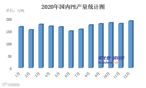 据买化塑研究院【化塑产业链决策系统】跟踪的数据显示,截至2020年12月31日,国内PE产量为2029万吨,同比增长13.5%。