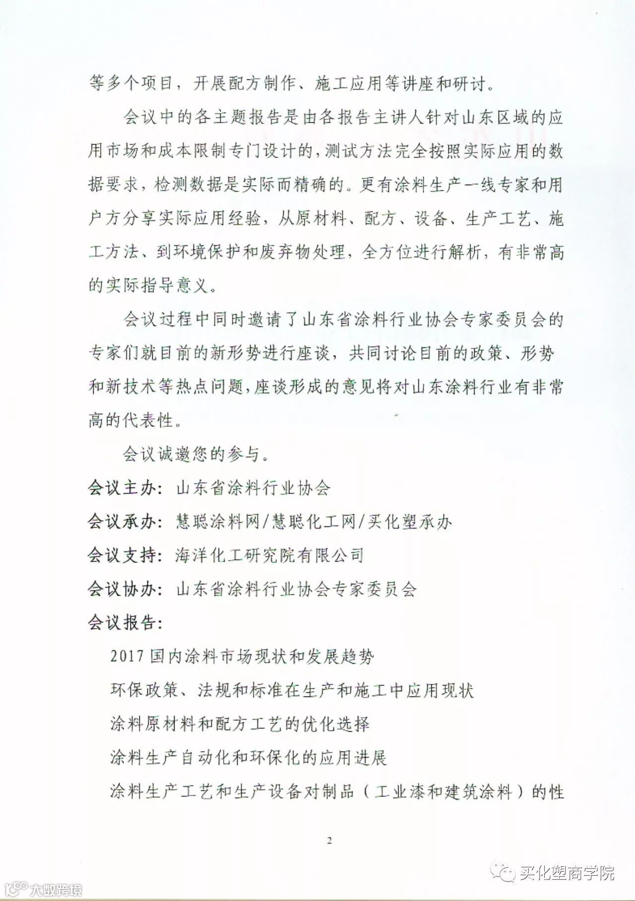 一、主办单位:山东省涂料行业协会