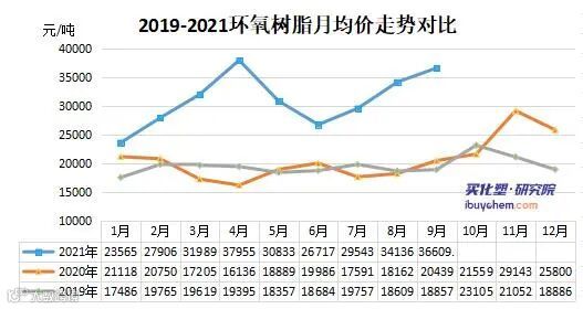 截止9月30日,华东液体环氧树脂价格涨至37500-38000元/吨,较8月末涨3500元/吨,9月环氧树脂月均价36609元/吨,环比涨7.24%,价格已触达年内最高位。