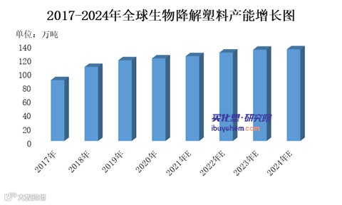 据买化塑研究院【化塑产业链决策系统】跟踪的数据显示,截至2020年底,全球生物降解塑料产能在120.1万吨,到2024年,产能将达到133.4万吨。