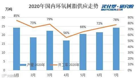 2020年上半年,国内环氧丙烷呈现供需同缩状态。其中利润不佳、需求拖累是主因。据买化塑研究院数据统计,1-6月份国内环氧丙烷总产量在124.86万吨,较去年同期下滑约18万吨,降幅达12%,上半年年平均开工率为72%,较去年降6.5个百分点。其中上半年的开工最低点出现在4月份,环丙及聚醚进口冲击、下游出口缩量、环丙亏损承压,绝大部分装置降负,当月平均开工降至56%,开工率高点出现在1月份,开工率85%。