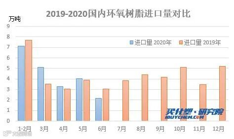 2020年上半年,中国环氧丙烷进口量21.78万吨,较去年同期增0.59万吨,其中进口最多月份在3月份,单月进口量5万吨以上,最少月份有望出现在6月份,仅为2.18万吨。