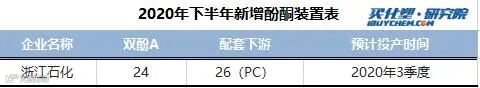 2020年下半年,仅有浙江石化一套24万吨双酚A装置计划投产,在下半年原料走势将不尽人意,且国内双酚A供应压力不减,浙石化双酚A装置投产后,外销期间内价格会受到压制。