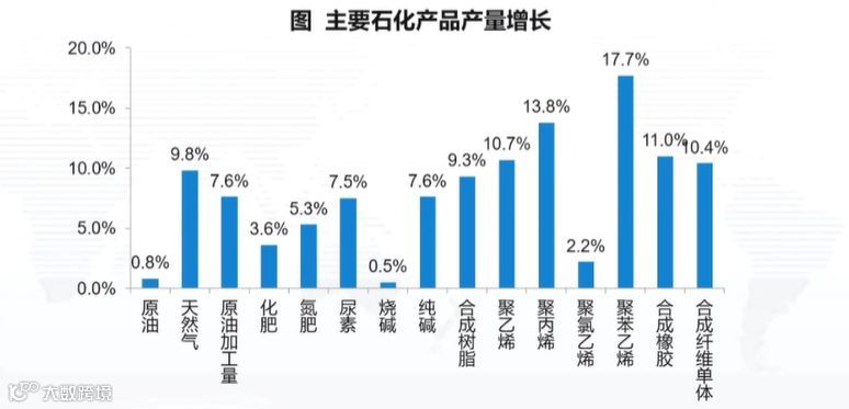 其中,炼油业主营收入4.02万亿元。原油加工量增加7.6%,聚乙烯产量增加10.7%,聚丙烯产量增加13.8%,聚苯乙烯产量增加17.7%,聚氯乙烯产量增加2.2%。