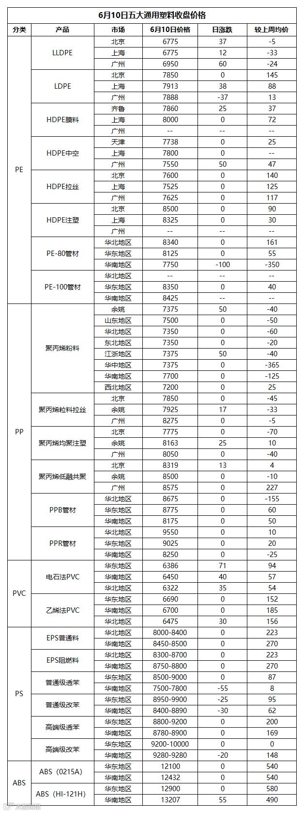 国内PE市场价格多数上涨。线性期货高开高位运行,部分石化调整出厂价,场内交投气氛偏谨慎,贸易商试探小涨报盘,下游接货意向欠佳,现货成交一般,实盘侧重商谈。国内LLDPE主流价格在66050-6950元/吨。