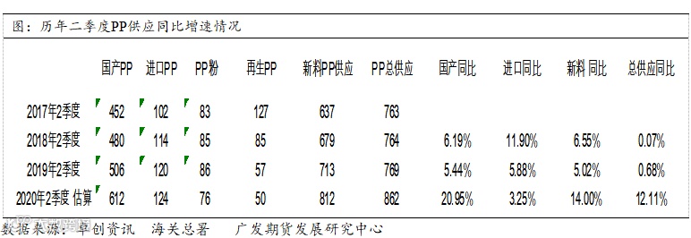 从PP新料来看,二季度累积供应同比增速14%,增速远超2018、2019年同期。不过,从PP总供应来看,二季度累积供应同比增速降低至12.11%,增速仍然远超2018、2019年同期。