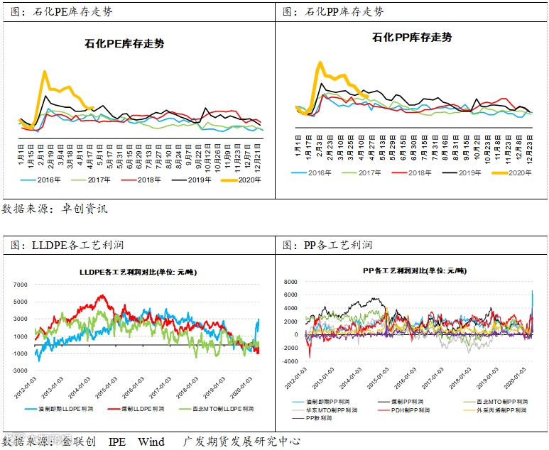进入二季度5月份,国际油价依旧处于低位,上游石化厂PE和PP的利润居高,我们判断两油大概率会采取一切手段去库存,比如主动降价去库存,用更多的销售货物数量来换取利润的增加。
