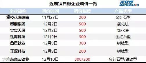 步入12月,国内多家钛白粉却企业宣布上调价格。