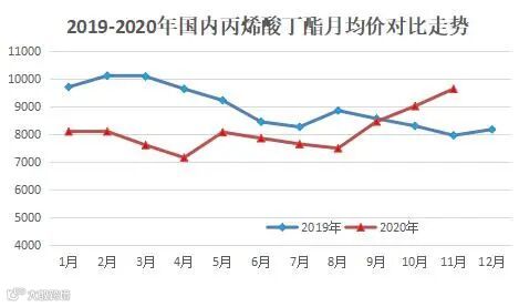 从近两年国内丙烯酸丁酯市场月均价来看,11月丙烯酸丁酯价格已超过去年同期水平。由于出口量大增,工厂库存量大幅降低,市场现货紧张,而原料正丁醇市场连读强势拉涨,成本面再次承压,使国内丙烯酸丁酯市场价格不断刷新今年新高,目前市场仍处在缺货状态。