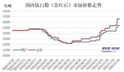 12月龙蟒佰利、山东东佳、中核钛白、山东道恩、攀钢钛业、海峰鑫化工、中信钛业等20多家钛白企业陆续发函涨价,国内价格上调700-1000元/吨、出口价格上调100-150美元/吨。