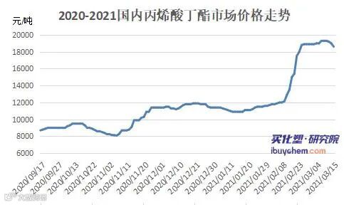 据买化塑研究院数据显示,截止2月26日国内华东地区正丁醇市场价格15500元/吨,与2月1日(正丁醇8800元/吨)价格相比,价格上调6700元/吨,涨幅76.13%。