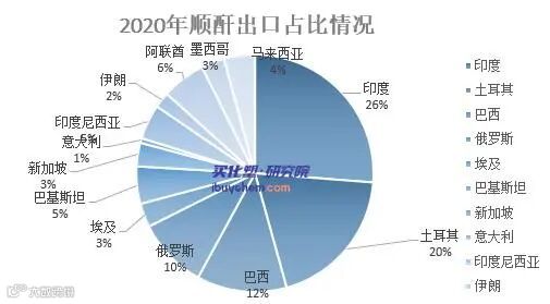 目前顺酐出口仍是中国顺酐消费领域中不可缺少的一环。2020年顺酐出口基本集中在印度,中东,俄罗斯,及东南亚地区为主,出口国居前三的是印度,土耳其,巴西,出口量分别达1.15万吨,1.12万吨,0.71万吨。