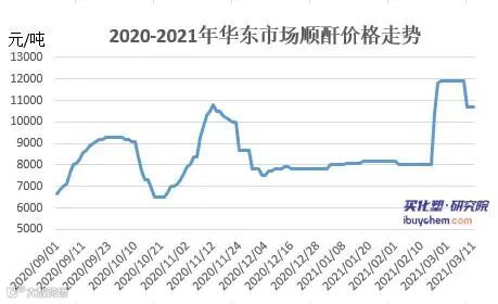 年后原油领涨大宗商品,顺酐跳涨至近三年来历史高位,山东地区顺酐于2021年2月23日冲高至12000元/吨,创3年多来新高。