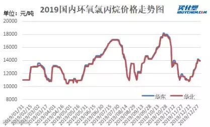 2019年12月月国内环氧氯丙烷市场价格同比上涨,仅12月月内市场上涨2千元/吨以上水平。上旬市场受海兴装置复产以及三岳产品产出消息的影响,市场面弱势运行,市场逐步跌至10800元/吨低点。随着价格跌至阶段性低点,市场人士补货情绪大幅提升,市场低价逐步淡出。环氧氯丙烷生产企业多交付订单为主,现货供应持紧,新单价格连续推涨为主,市场一度推至14500元/吨及偏上。下游用户追高买盘谨慎,业者多消化库存为主,新单商谈多维持刚需采购,市场高位推涨乏力,商谈氛围趋淡。