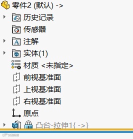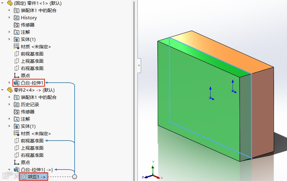 2.打开新创建带有外部参考的零部件,并冻结带有外部参考凸台拉伸特征