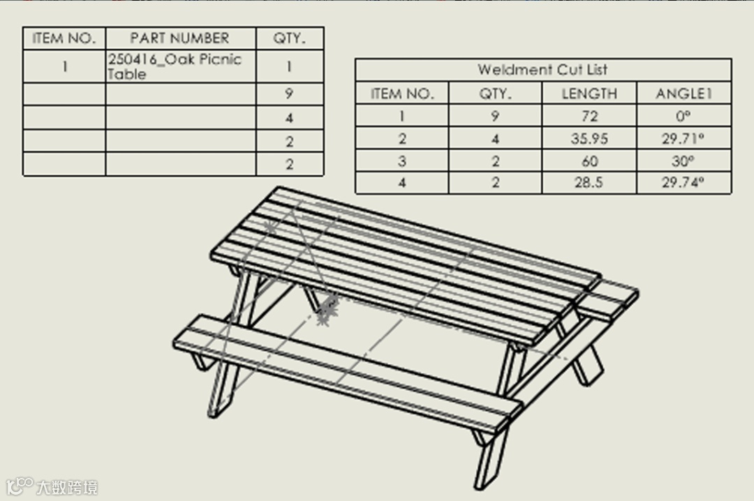 说明。提供有关每个切割清单项目的详细信息,如材料类型和表面处理。