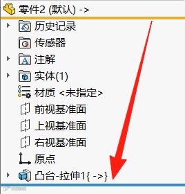 b)将黄色冻结栏,拖动到凸台拉伸特征下,冻结的特征将从重建模型中排除,从而减少重建时间并防止意外更改模型。