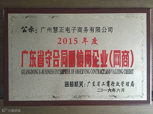 广州慧正电子商务有限公司获“2015年度广东省守合同重信用企业(网商)”公示