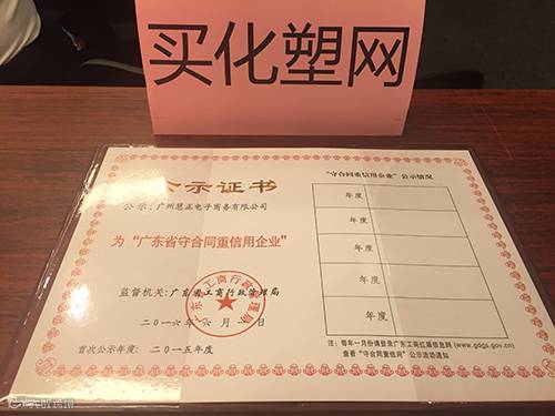买化塑网站上线仅一年时间,即获得广东省网商协会授予的“2015年度广东省守合同重信用企业(网商)”荣誉称号,不仅证明该平台发展符合相关法律法规,是诚信经营的典范,更是买化塑公信力与知名度的再次提升。相信在广东省网商协会诚信认证体系服务与监督下,买化塑将继续更加合法合规地发展,为越来越多的行业机构及B2B互联网公司所认可。