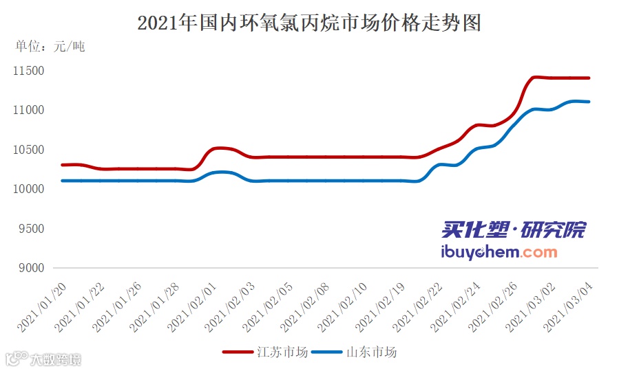 数据显示,近6年两会期间环氧氯丙烷市场价格以跌为主,下跌概率在50%。两会前一个月,环氧氯丙烷市场基本处于下跌走势,主要是受开工受限,需求不足所导致。两会以后,市场下跌概率变大。近6年来,有4个年份是下跌态势,下跌概率超过66%,最大跌幅为2019年的9.02%。近期环氧氯丙烷走势如下图: