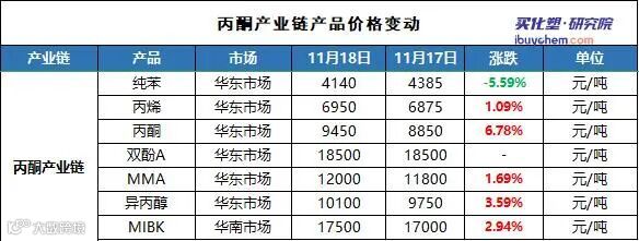 导读:MMA、MIBK、异丙醇均受到丙酮走高带动,在上下游联动支撑之下,11月丙酮再战雄风