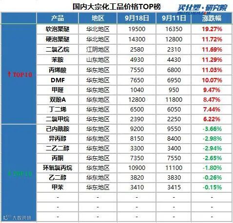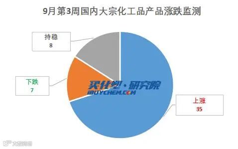 本周来看,“金九”传统旺季中,经济运行的积极变化在增多,市场需求继续恢复,化工品多为持续涨势,整体三季度经济增速有望比二季度明显加快。在“金九银十”传统旺季带动下,预计后期国内整体化工市场将持续向好。