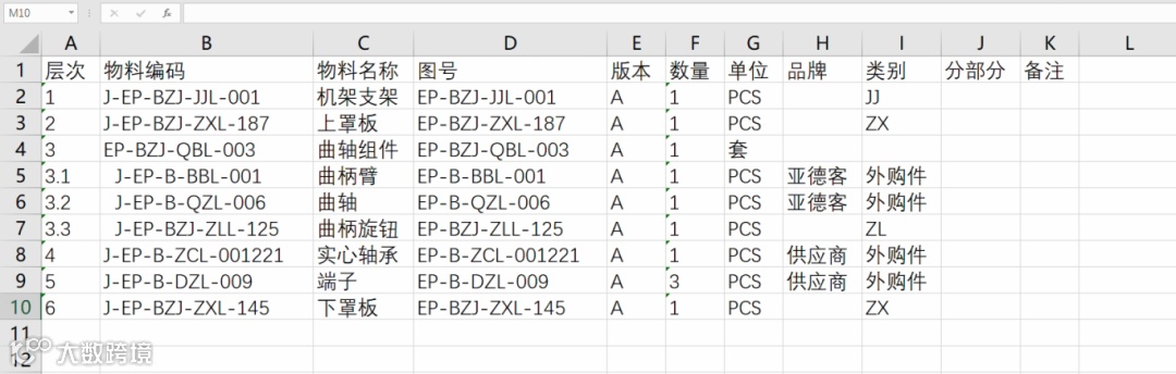 以往PDM一键生成的材料明细表: