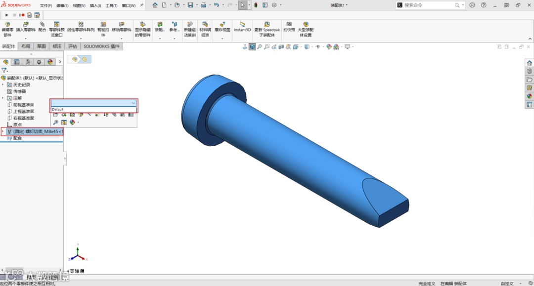 可以看到另存出来的螺钉依然是被识别为Toolbox标准件。同时在配置中,当前配置为空白配置,切换回默认配置就会恢复